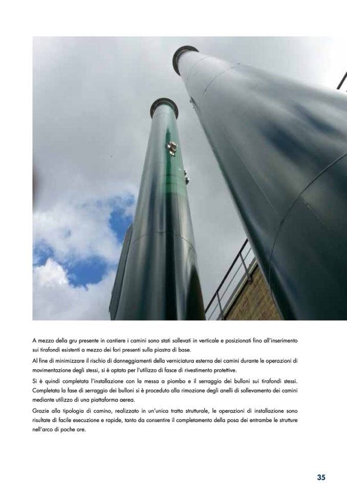 Completata la fase di serraggio dei bulloni si è proceduto alla rimozione degli anelli di sollevamento dei camini