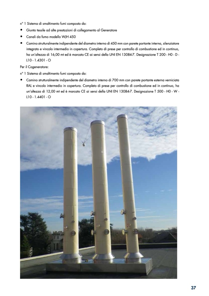 integrato e vincolo intermedio in copertura. Completo di prese per controllo di combustione ed in continuo,