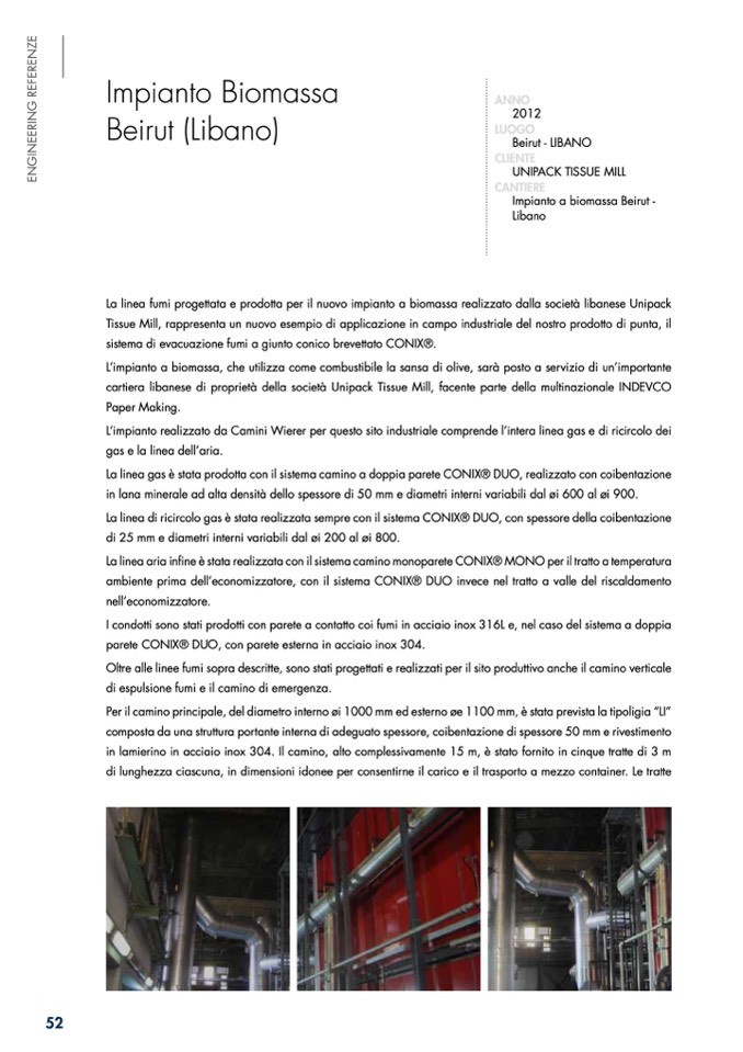 La linea fumi progettata e prodotta per il nuovo impianto a biomassa realizzato dalla società libanese Unipack