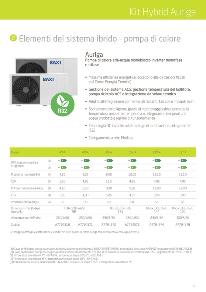 Per maggiori dettagli, caratteristiche e dati tecnici delle pompe di calore Auriga fare riferimento al catalogo dedicato.