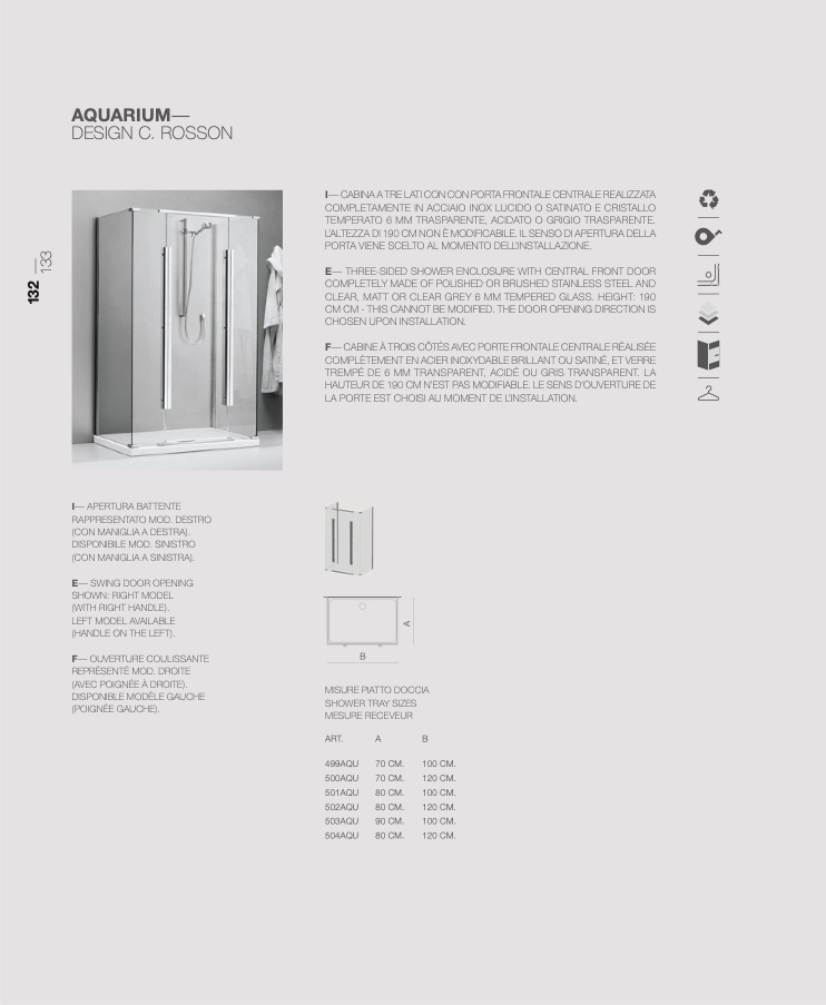 E— THREE-SIDED SHOWER ENCLOSURE WITH CENTRAL FRONT DOOR