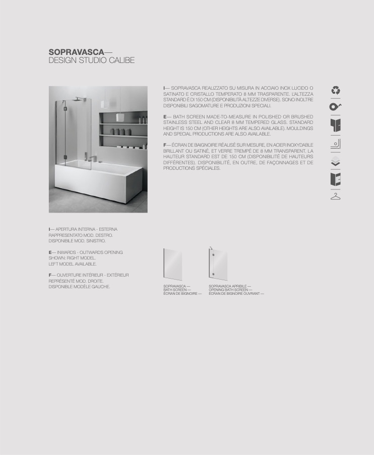 E— BATH SCREEN MADE-TO-MEASURE IN POLISHED OR BRUSHED