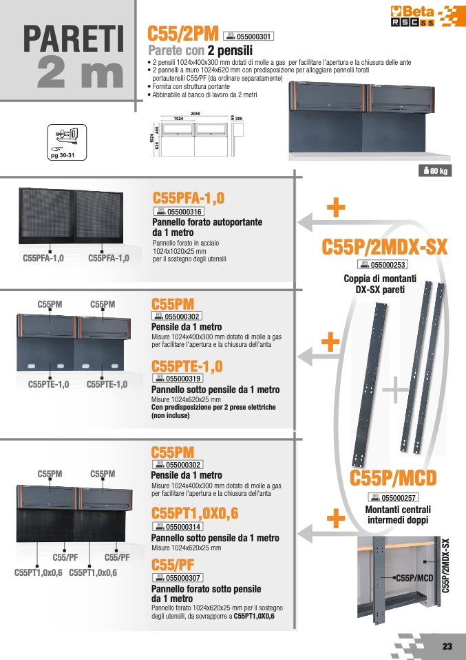 • 2 pannelli a muro 1024x620 mm con predisposizione per alloggiare pannelli forati