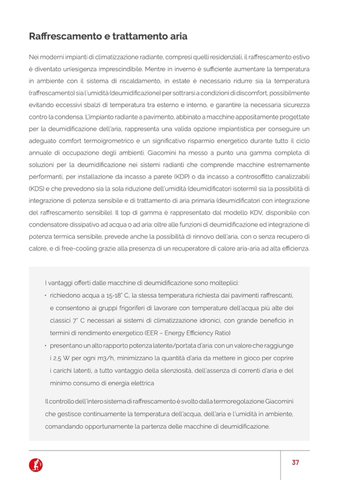 • richiedono acqua a 15-18° C, la stessa temperatura richiesta dai pavimenti raffrescanti,