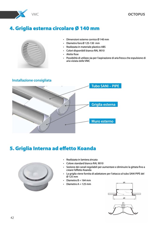 4. Griglia esterna circolare Ø 140 mm