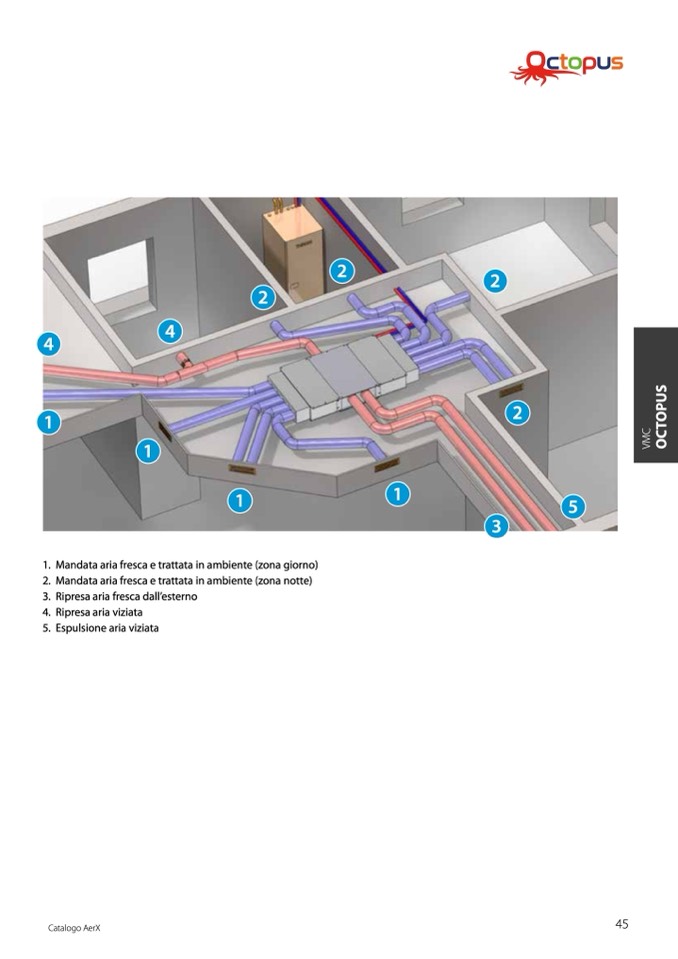 2. Mandata aria fresca e trattata in ambiente (zona notte)