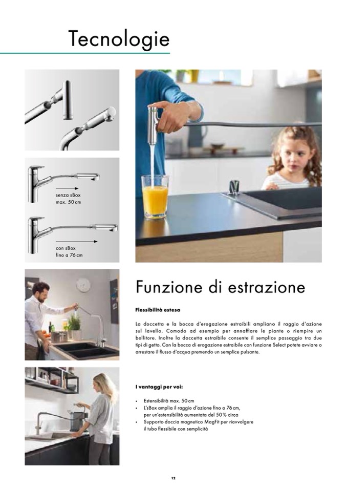 bollitore. Inoltre la doccetta estraibile consente il semplice passaggio tra due
