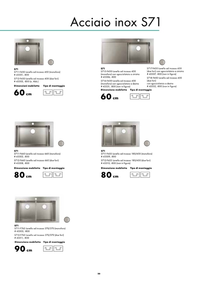 S711-F450 Lavello ad incasso 450 (monoforo)