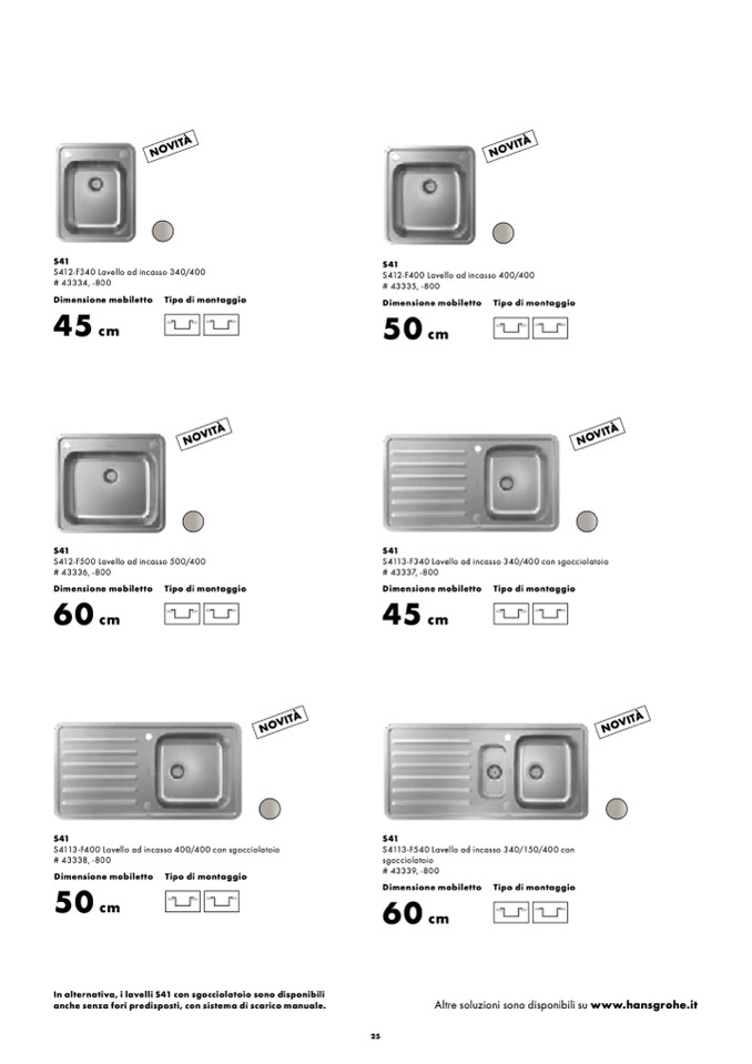 In alternativa, i lavelli S41 con sgocciolatoio sono disponibili