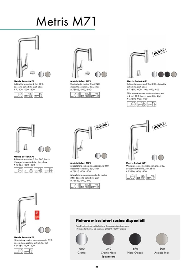 Finiture miscelatori cucina disponibili