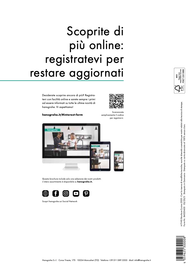 Hansgrohe S.r.l. · Corso Trieste, 170 · 10024 Moncalieri (TO) · Telefono +39 011 089 2200 · Mail: info@hansgrohe.it