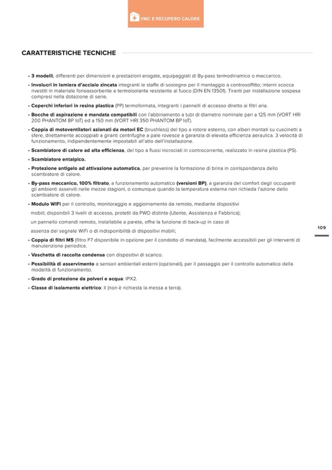 • Bocche di aspirazione e mandata compatibili con l’abbinamento a tubi di diametro nominale pari a 125 mm (VORT HRI
