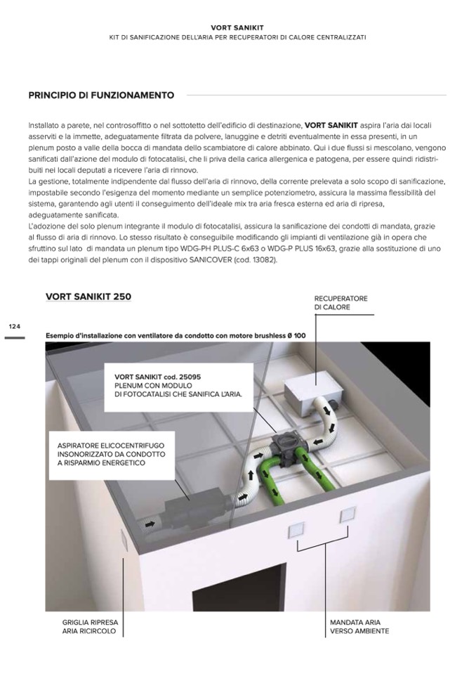 Installato a parete, nel controsoffitto o nel sottotetto dell’edificio di destinazione, VORT SANIKIT aspira l’aria dai locali