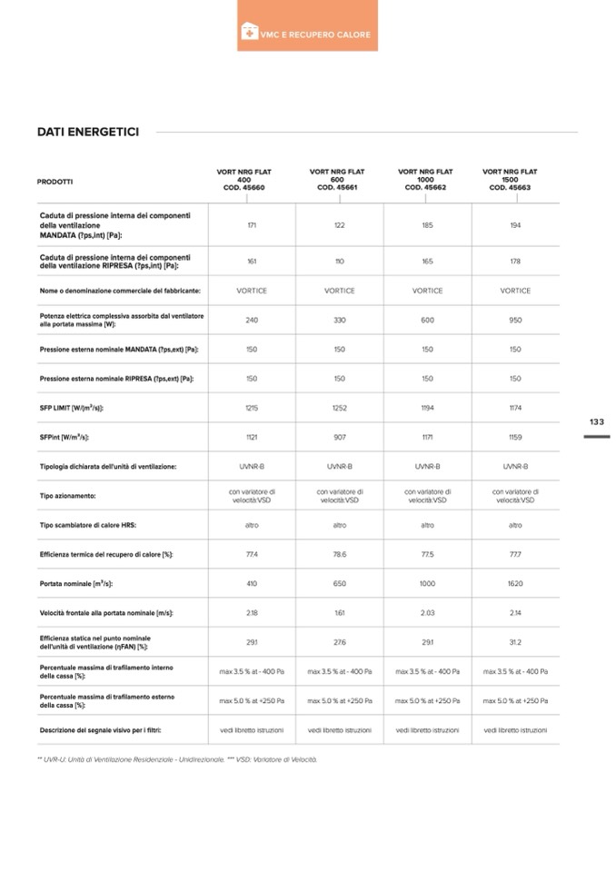 ** UVR-U: Unità di Ventilazione Residenziale - Unidirezionale. *** VSD: Variatore di Velocità.