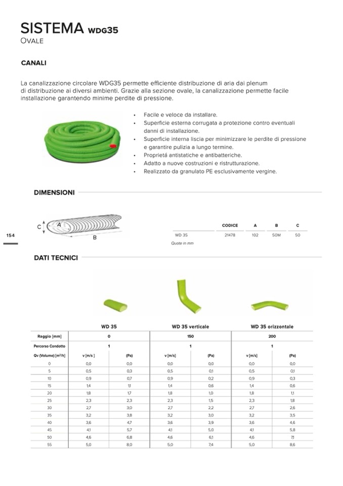 di distribuzione ai diversi ambienti. Grazie alla sezione ovale, la canalizzazione permette facile