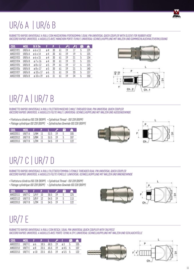 RACCORD RAPIDE UNIVERSEL A AIGUILLES AVEC PORTE-TUYAU A EPI | UNIVERSAL-SCHNELLKUPPLUNG MIT WALZEN UND SCHLAUCHT