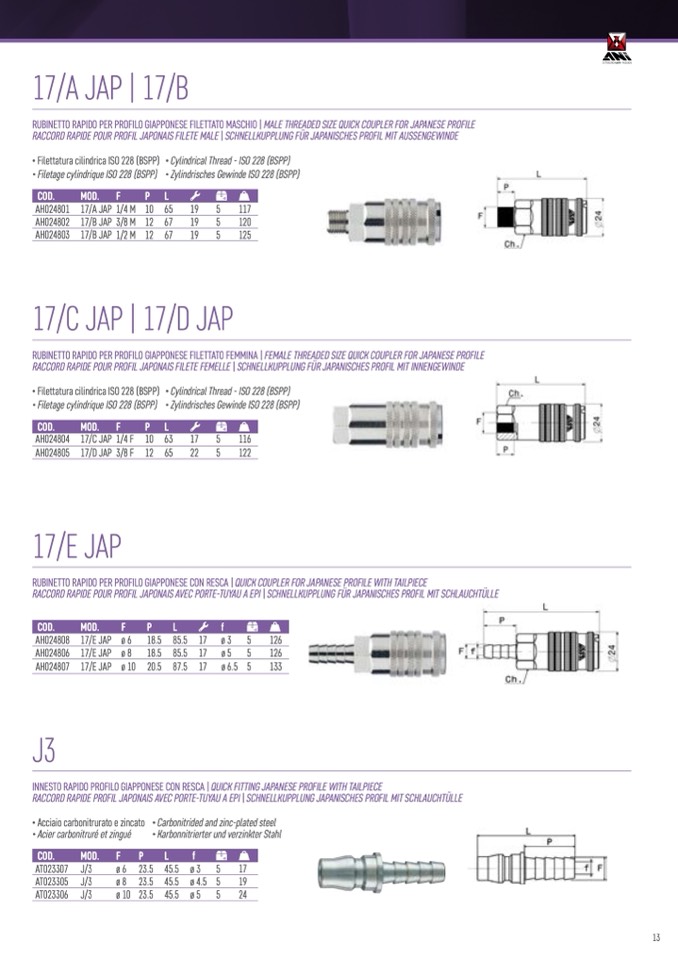 RACCORD RAPIDE POUR PROFIL JAPONAIS FILETE FEMELLE | SCHNELLKUPPLUNG FÜR JAPANISCHES PROFIL MIT INNENGEWINDE
