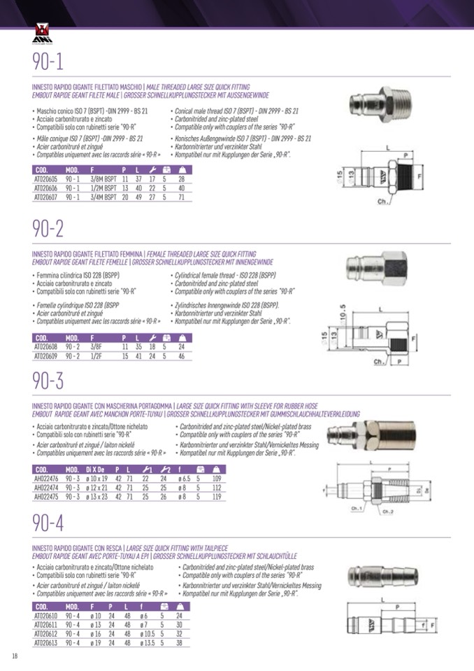 • Kompatibel nur mit Kupplungen der Serie „90-R“.