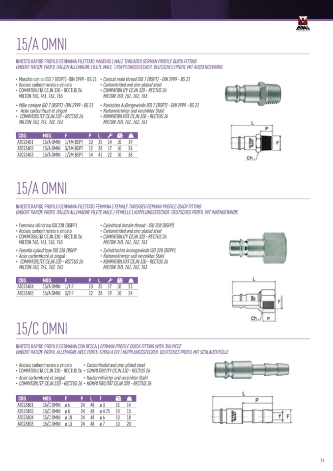 INNESTO RAPIDO PROFILO GERMANIA FILETTATO MASCHIO | MALE THREADED GERMAN PROFILE QUICK FITTING