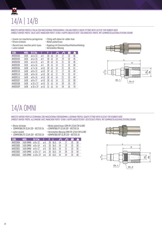 EMBOUT RAPIDE PROFIL ITALIE AVEC MANCHON PORTE-TUYAU | KUPPLUNGSSTECKER ITALIENISCHES PROFIL MIT GUMMISCHLAUCHHALTEVERKLEIDUNG