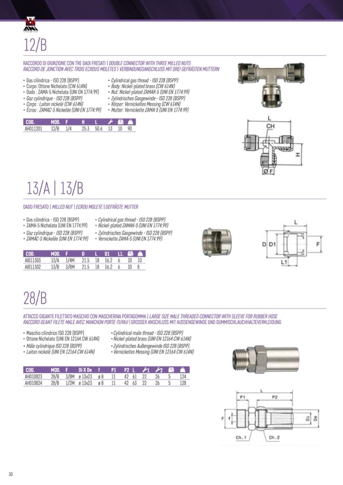 • Mutter: Vernickelte ZAMA-5 (UNI EN 1774:99)