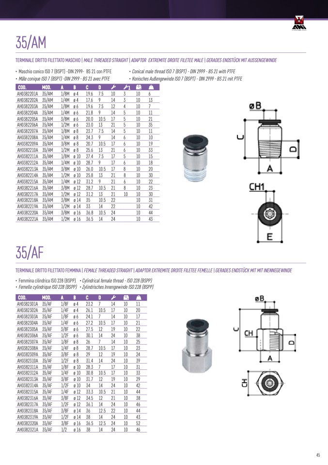 TERMINALE DRITTO FILETTATO FEMMINA | FEMALE THREADED STRAIGHT | ADAPTOR EXTREMITE DROITE FILETEE FEMELLE | GERADES ENDSTÜCK MIT MIT INENNEGEWINDE