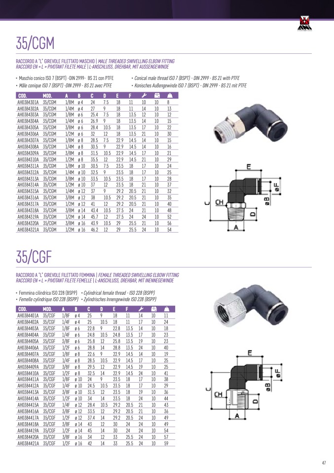 • Cylindrical female thread - ISO 228 (BSPP)