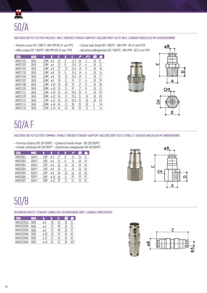 RACCORDO DRITTO FILETTATO MASCHIO | MALE THREADED STRAIGHT ADAPTOR | RACCORD DROIT FILETE MALE | GERADER ANSCHLUSS MIT AUSSENGEWINDE