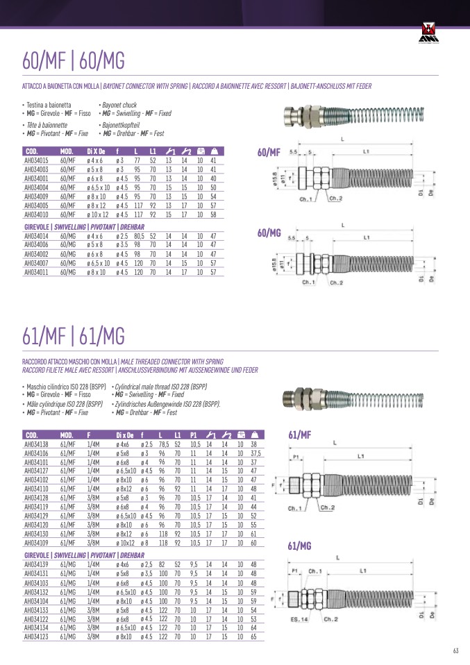 ATTACCO A BAIONETTA CON MOLLA | BAYONET CONNECTOR WITH SPRING | RACCORD A BAIONNETTE AVEC RESSORT | BAJONETT-ANSCHLUSS MIT FEDER