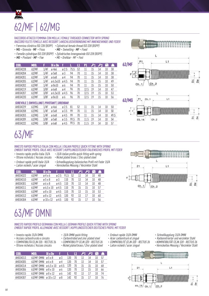 RACCORDO ATTACCO FEMMINA CON MOLLA | FEMALE THREADED CONNECTOR WITH SPRING