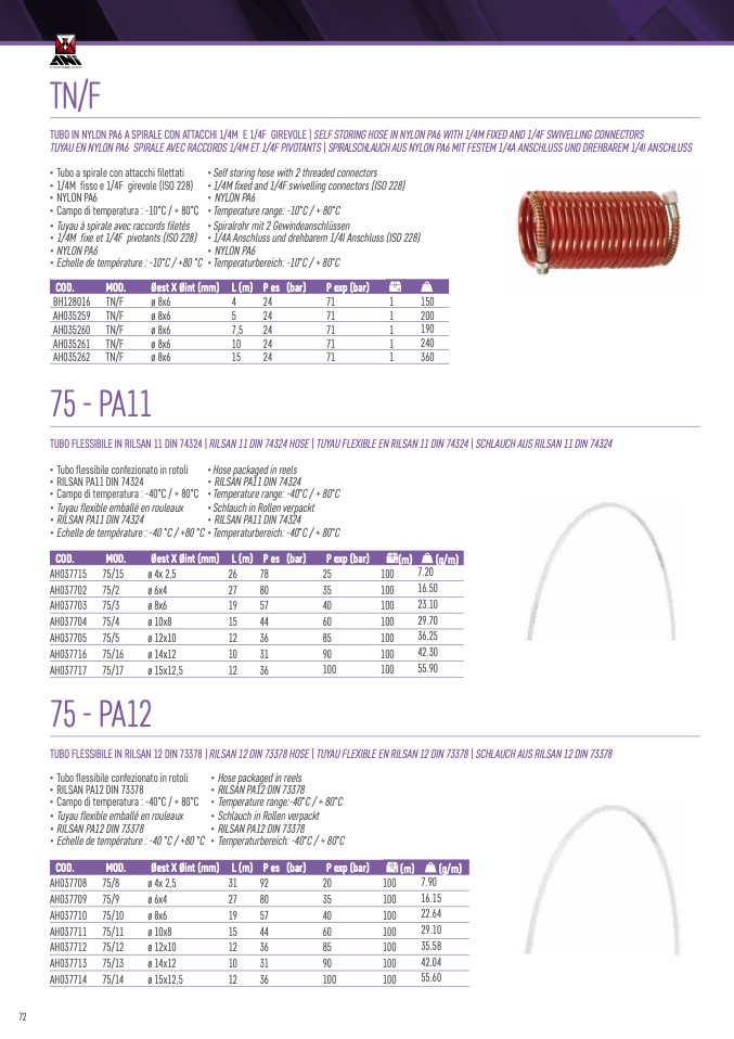 TUBO FLESSIBILE IN RILSAN 11 DIN 74324 | RILSAN 11 DIN 74324 HOSE | TUYAU FLEXIBLE EN RILSAN 11 DIN 74324 | SCHLAUCH AUS RILSAN 11 DIN 74324