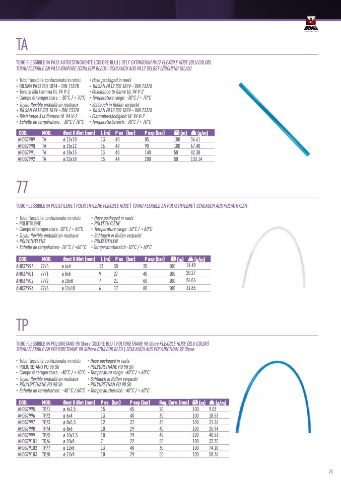 TUBO FLESSIBILE IN POLIETILENE | POLYETHYLENE FLEXIBLE HOSE | TUYAU FLEXIBLE EN POLYETHYLENE | SCHLAUCH AUS POLYÄTHYLEN