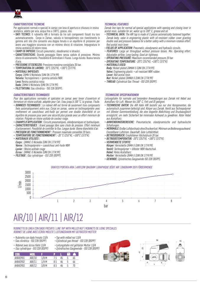 • DATI TECNICI: Il rubinetto AIR è formato da tre soli componenti fissati tra loro