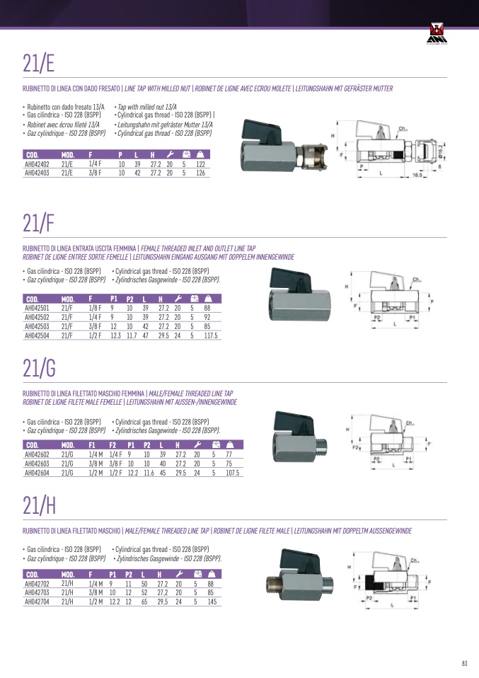 ROBINET DE LIGNE FILETE MALE FEMELLE | LEITUNGSHAHN MIT AUSSEN-/INNENGEWINDE