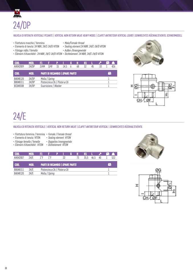 VALVOLA DI RITENUTA VERTICALE | VERTICAL NON RETURN VALVE | CLAPET ANTIRETOUR VERTICAL | SENKRECHTES RÜCKHALTEVENTIL