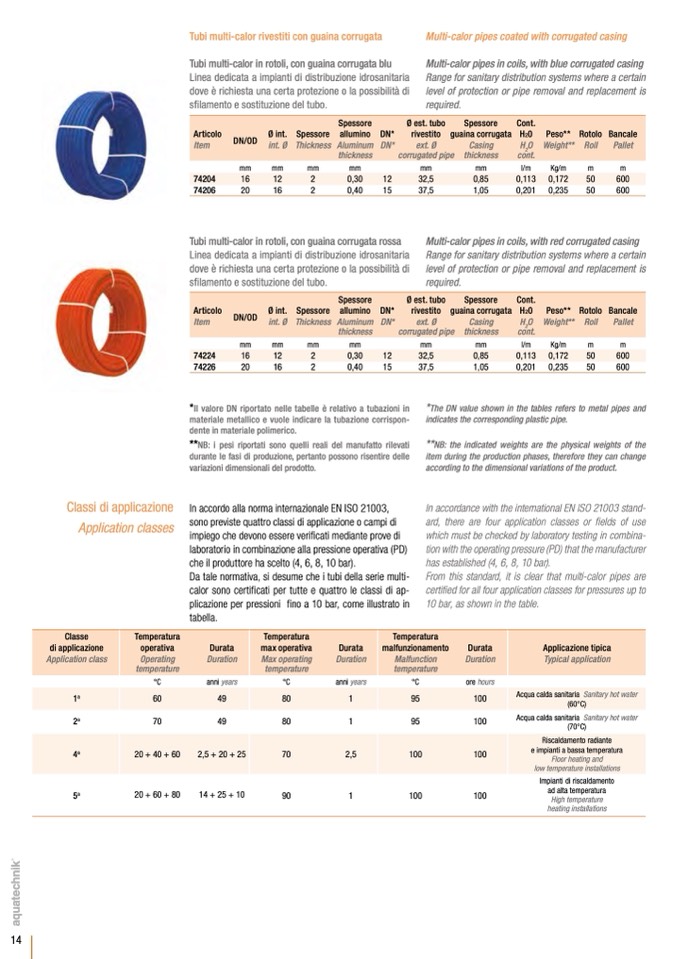Da tale normativa, si desume che i tubi della serie multi-