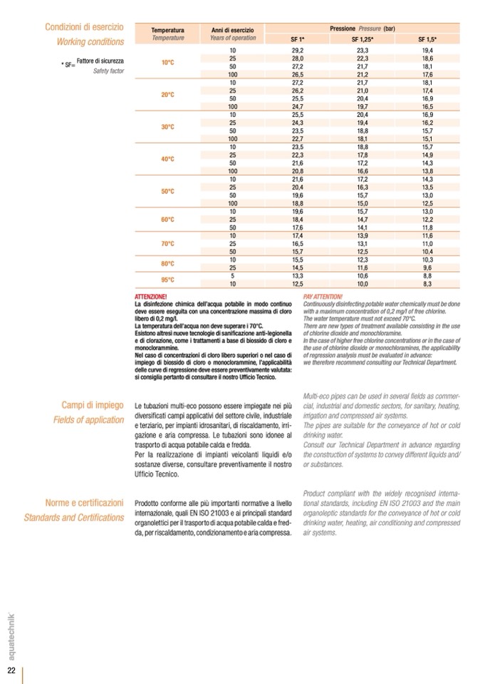 organolettici per il trasporto di acqua potabile calda e fred-