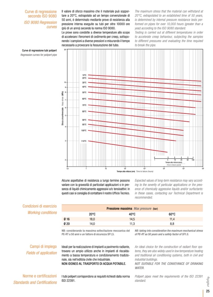 PE-RT a 50 anni e un fattore di sicurezza SF1,5.