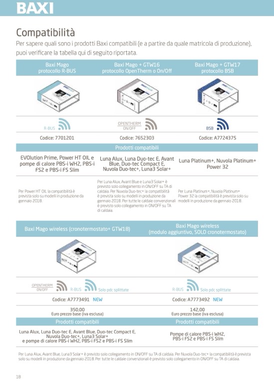 solo su modelli in produzione da gennaio 2018. Per tutte le caldaie convenzionali è previsto solo collegamento in ON/OFF su TA di caldaia.