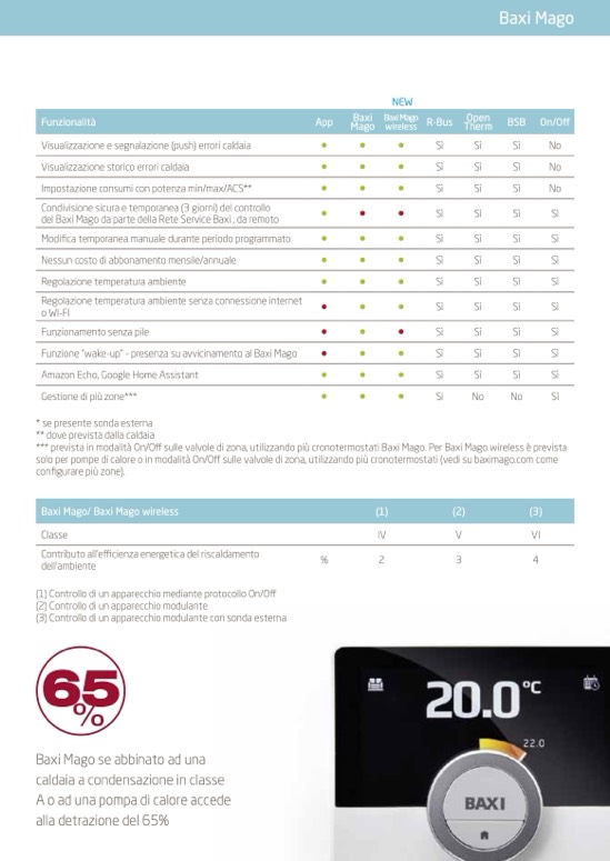 *** prevista in modalità On/Off sulle valvole di zona, utilizzando più cronotermostati Baxi Mago. Per