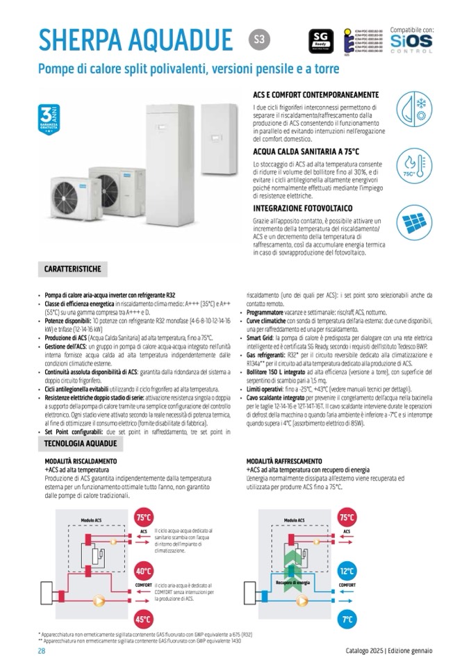 Gas refrigeranti: R32* per il circuito reversibile dedicato alla climatizzazione e