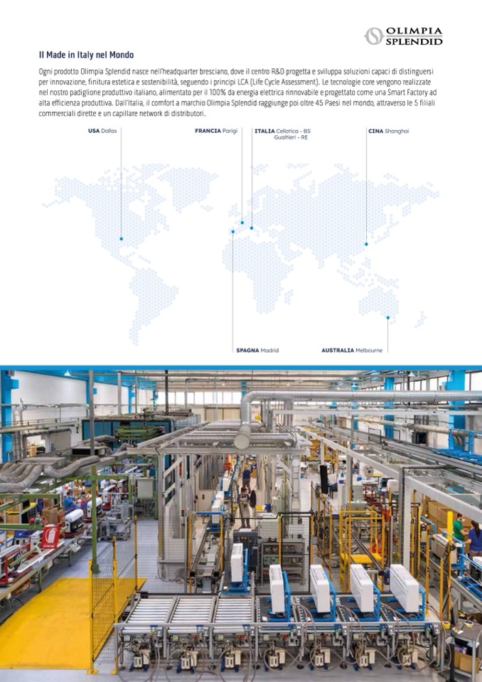 alta efficienza produttiva. Dall’Italia, il comfort a marchio Olimpia Splendid raggiunge poi oltre 45 Paesi nel mondo, attraverso le 5 filiali