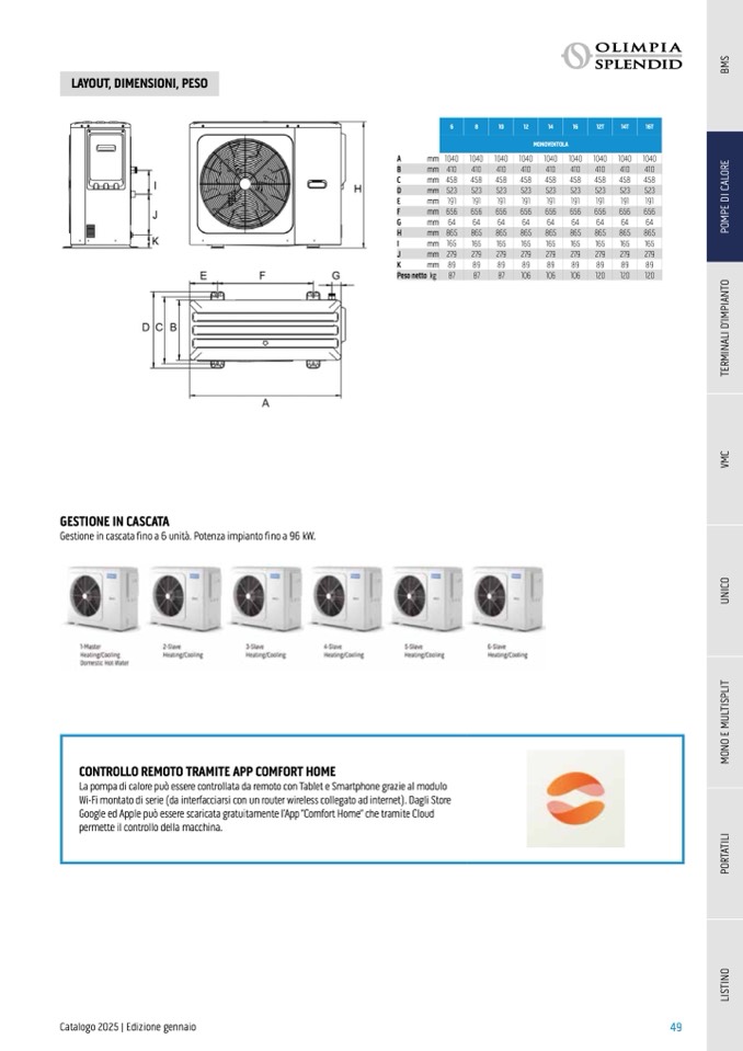 Gestione in cascata fino a 6 unità. Potenza impianto fino a 96 kW.