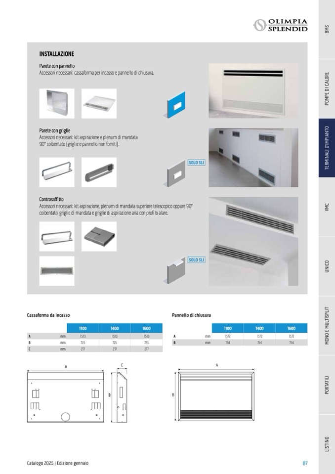 Accessori necessari: cassaforma per incasso e pannello di chiusura.