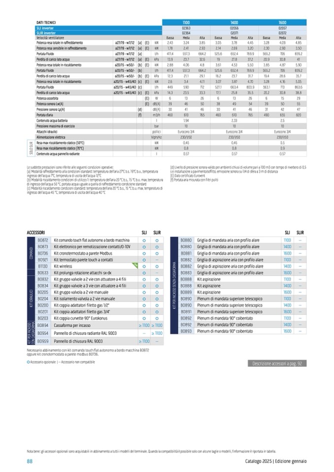 Nota bene: gli accessori opzionali sono acquistabili in abbinamento a tutti i modelli del terminale. Quando la compatibilità è possibile solo con alcune taglie o modelli, l’informazione è riportata in tabella.