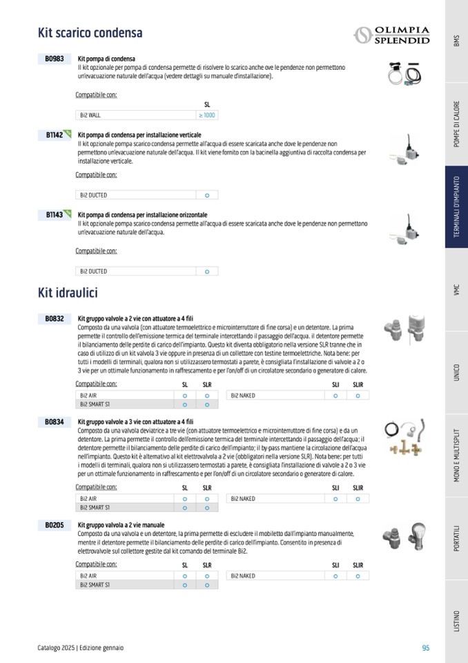 nell’impianto. Questo kit è alternativo al kit elettrovalvola a 2 vie (obbligatori nella versione SLR). Nota bene: per tutti