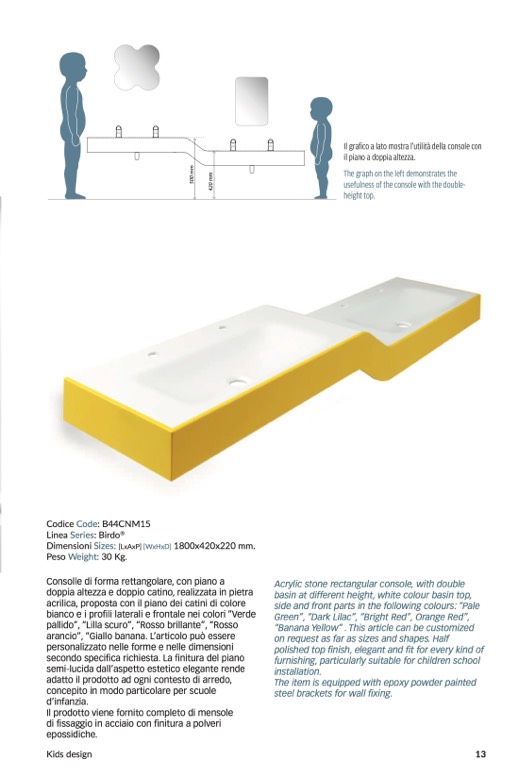 Dimensioni Sizes: [LxAxP] [WxHxD] 1800x420x220 mm.