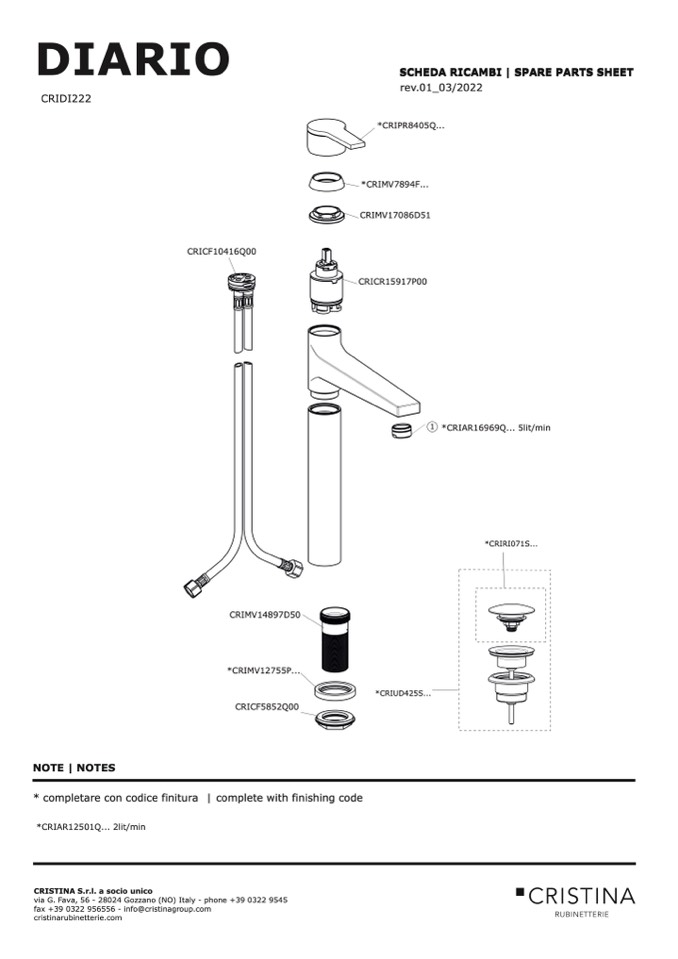 SCHEDA RICAMBI | SPARE PARTS SHEET