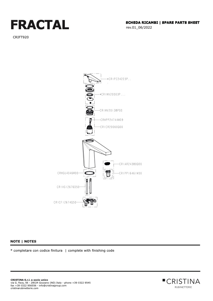 SCHEDA RICAMBI | SPARE PARTS SHEET