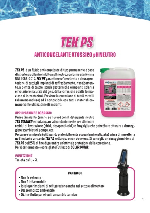 nell’impianto versando TEK PS nell’acqua e non viceversa. Si consiglia un dosaggio minimo di